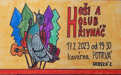 Z trampských osad první republiky, širých moří a oceánů, divokých stepí a lesů k vám přilétá nespoutaný hudební spolek Holub Hřivnáč, Columba Palumbus. Za doprovodu basy a citery vás omámí čtyřhlasým klokotáním řeky mládí a pohádku lesů přenese do vašich očí a uší.